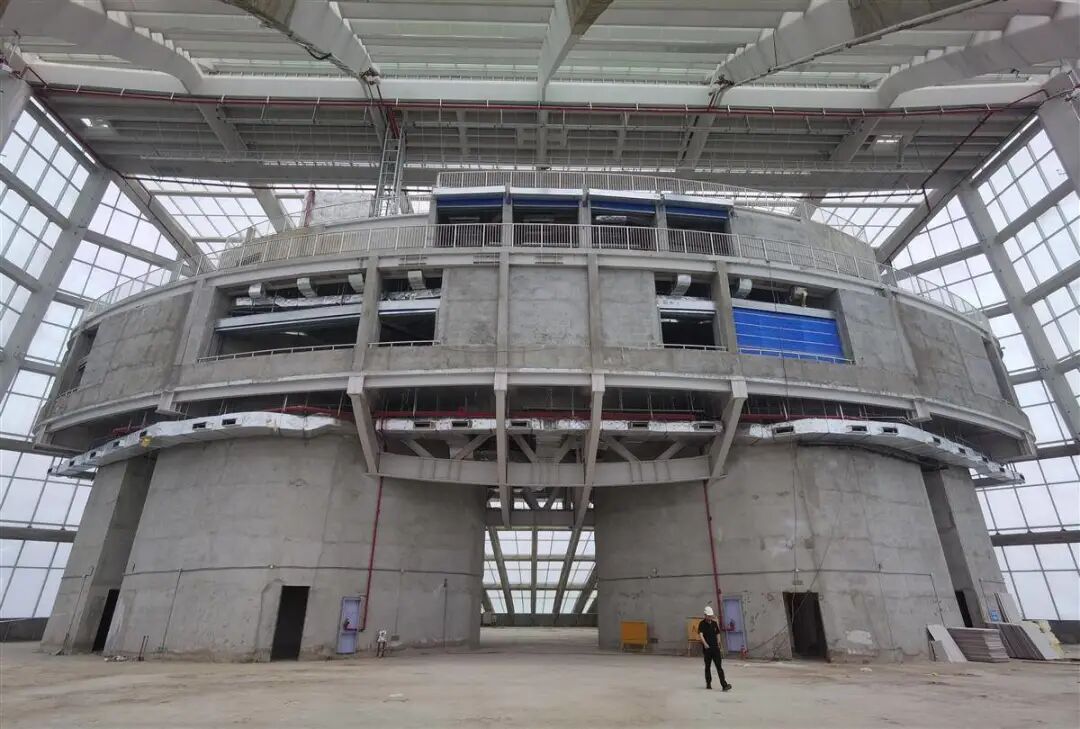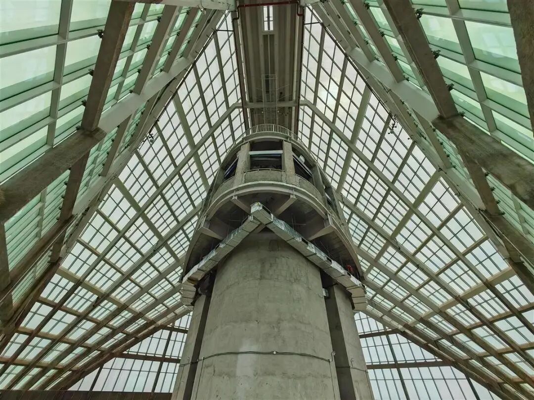 长江航运中心大楼内,百余名工人仍在紧张地进行消防等设备安装和调试。登上64楼平台,一个约2500平米、空高34.6米的巨型穹顶空间映入眼帘。巨型封闭空间内,50米长、21米高的三层退台形似巨轮,成为瞰江观景的绝佳场所,也是长江、汉江交汇处最高视角。