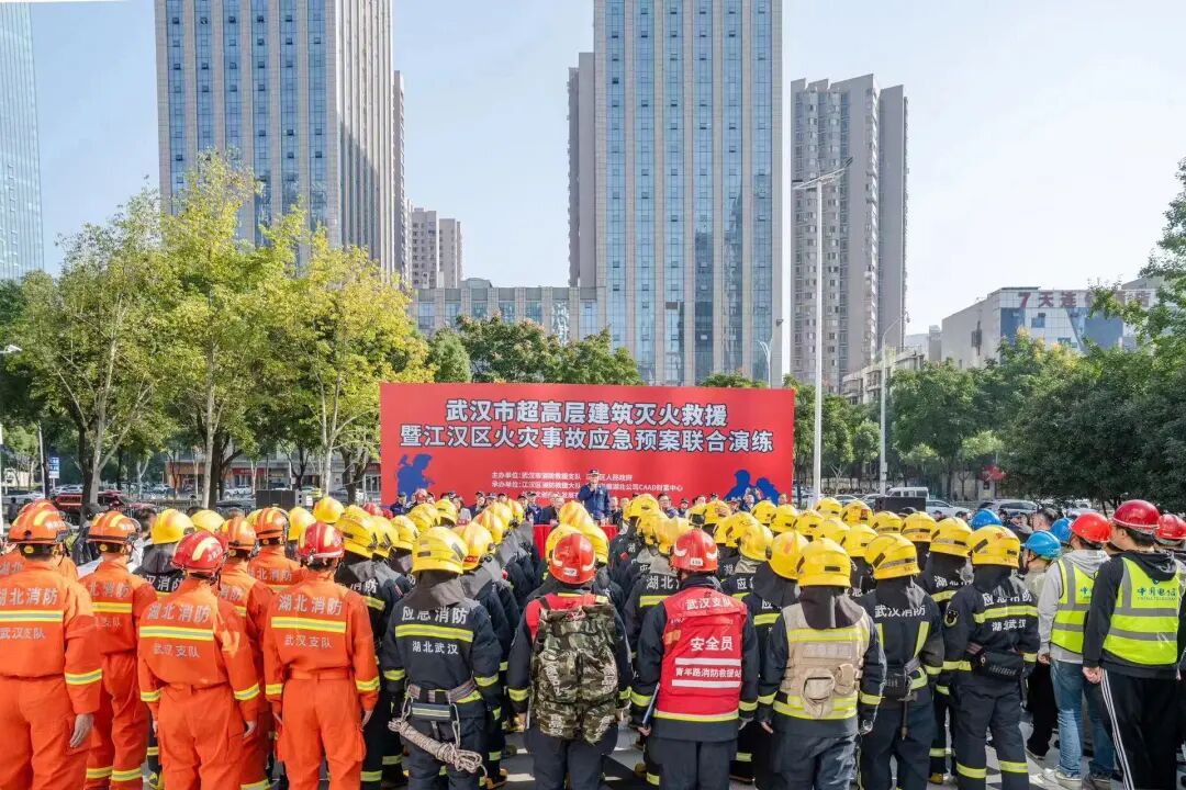 10月20日,武汉市超高层建筑灭火救援暨江汉区火灾事故应急预案联合演练在江汉区CAAD财富中心举行,6支消防救援力量、12个部门联动力量、130余名救援人员、43余台救援车辆参加演练。