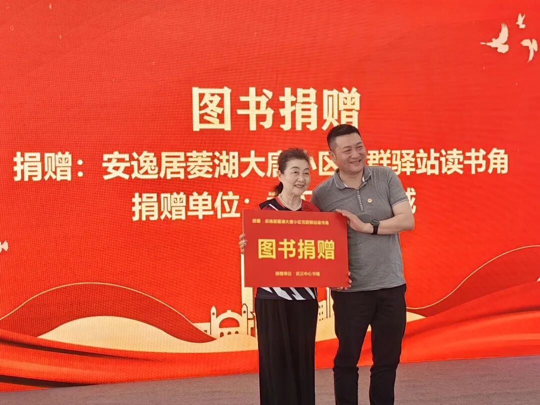 今年6月以来,武汉中心书城楼宇综合党委与汽运社区安逸居菱湖大唐小区党支部签订双区融合协议,正式结对,为小区党群驿站读书角捐书100册,并为辖区内的武汉市第十九中捐赠红色书籍50册。