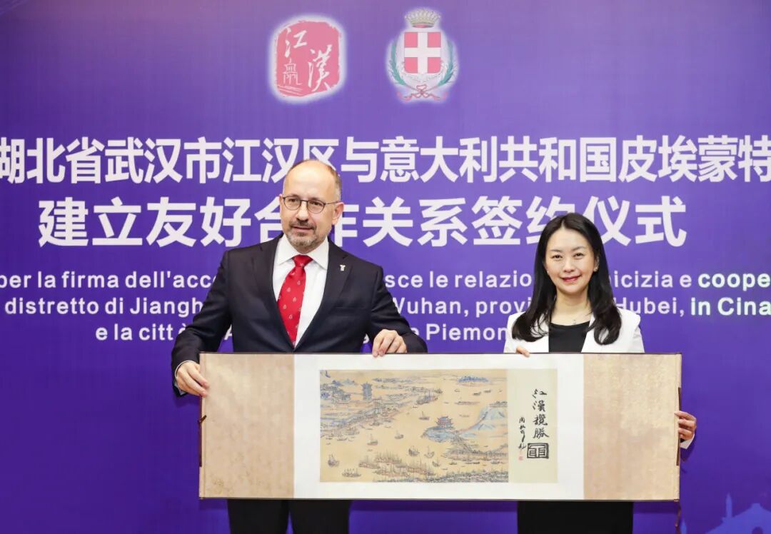 叶文静表示:江汉区是老汉口的发源地,既历史悠久又充满时尚气息,是武汉市重要的金融、商贸核心区,贯通亚欧大陆的“万里茶道”在此出发,被誉为“楚中第一繁盛处”。希望围绕经贸、文化、时尚、体育、美食等方面,持续与阿斯蒂市开展深度合作,进一步扩大高水平对外开放,努力提升国际化程度,以高水平开放推动高质量发展。