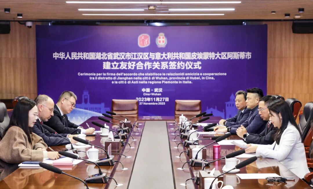 据悉,今年5月,在省、市委外办的指导下,江汉区与阿斯蒂市正式结缘,半年来,双方加快推进交流合作。争取阿斯蒂市支持,江汉区积极对接意大利皮埃蒙特D.Barbero零食品牌,计划在汉开设全国首店;与意大利国家时尚协会终身名誉主席马里奥·博赛利会面交流,争取其对武汉时装周和时尚产业发展的专业权威指导;与米兰华夏集团探讨相关合作事宜等,助力武汉国际消费中心城市建设和国际影响力提升。下一步,双方将进一步推动企业互动,加快国际贸易合作,促进相互投资;开展中意文化深度对话,组织高水平演出、展览、讲座、美食等文化交流;增强体育互动,开展赛马、冰雪、足球等等赛事交流和青训活动。