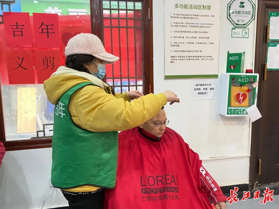 社区共建单位正在为快递小哥提供义剪服务。 记者李奥 摄