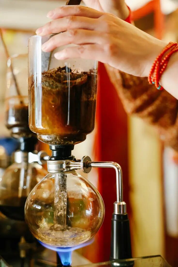 再放入一个外型像化学玻璃器皿的虹吸壶中现煮
