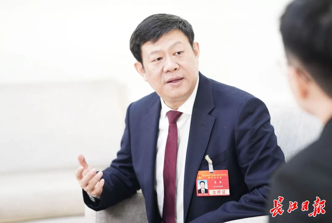武汉市人大代表、江汉区委书记李湛(左)做客长江日报两会直播间。