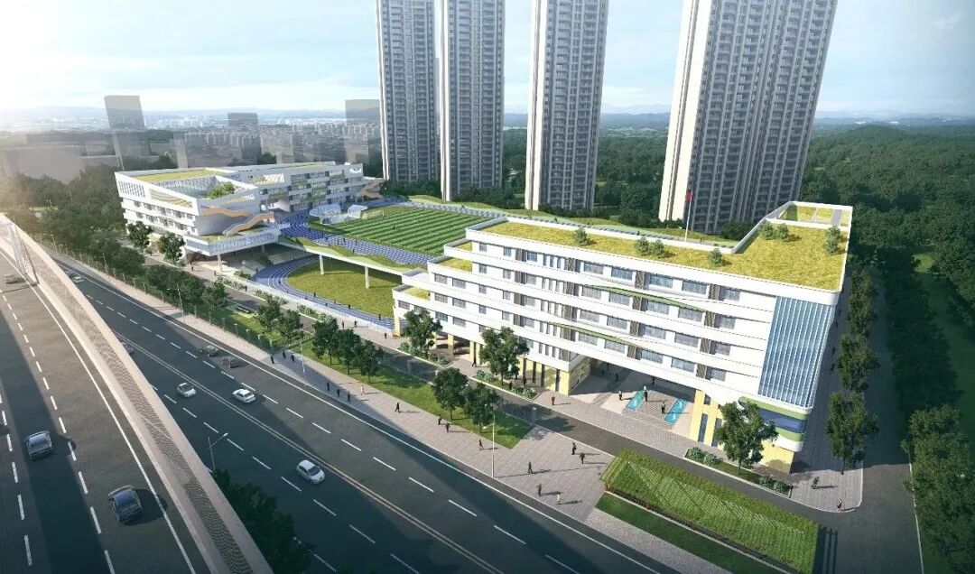 大兴第一实验学校福星校区项目位于江汉区新湾路和姑嫂树路交汇处,用地面积2.9万平方米,新建总建筑面积5.8万平方米,主要新建1栋6层初中教学楼、1栋5层小学教学楼及配套设施,并提供437个停车位,总投资4.1亿元。项目充分贯彻教育以人为本理念,以“书山叠院”形态,通过建筑体量的退让和围合,达到土地空间和教育需求功能的最大化整合利用。项目建成后将有力缓解江汉区北部片区中小学就学压力,打造成为具有集约高效、科学管理、智慧教育特色的中心城区九年一贯制学校“新标杆”。