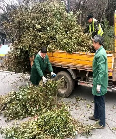 青松社区联合物业、电力、园林等单位,对万松小区的树木进行修剪、清运,同步检查电力线路;青年社区组织应急队伍,加强对供水、供气设施的检查和维护。