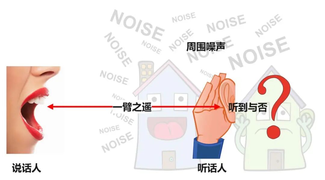 也可以使用如下简便方法:您以正常的音量说话,看离您一臂之遥的人是否能听到;如果听不到,提示周围噪声的音量可能过高。