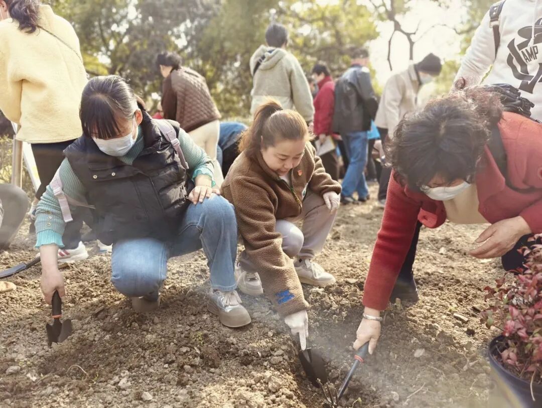 你一锄,我一铲,康复者、家属、志愿者在翻新的“绿趣基地”上种植起了火焰南天竹、矾根、金姬小蜡等植物。