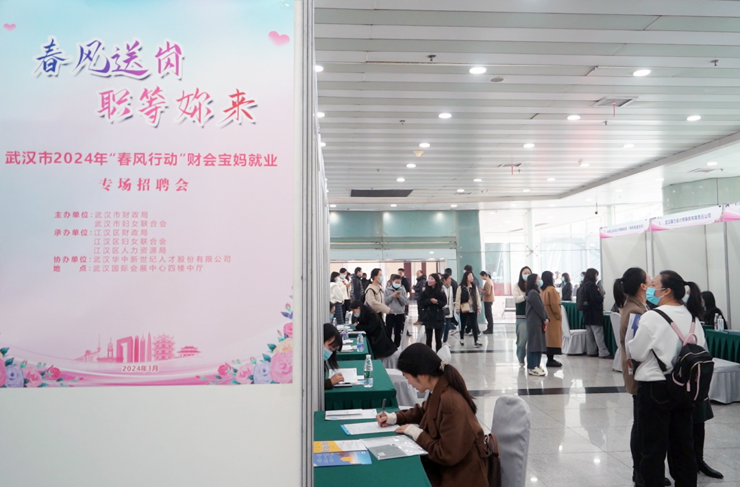 春暖花开,就业护航。3月12日上午,由武汉市财政局、市妇女联合会主办,江汉区财政局、区妇女联合会和区人力资源局承办,武汉华中新世纪人才股份有限公司协办的武汉市2024年“春风行动”财会宝妈就业专场招聘会在武汉国际会展中心举办。