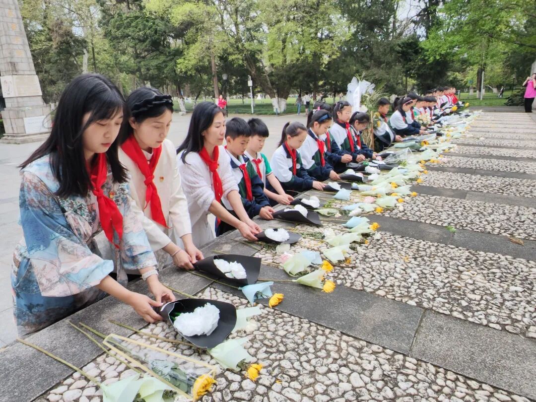 民族街道大董社区联合大兴路小学赴苏联空军志愿队烈士墓开展“清明祭英烈”寻访活动。