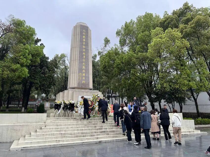 汉兴街道华安里社区组织在职党员、社区工作者、共建单位和居民骨干等100余人在北伐独立团烈士陵园默哀鞠躬、敬献鲜花。