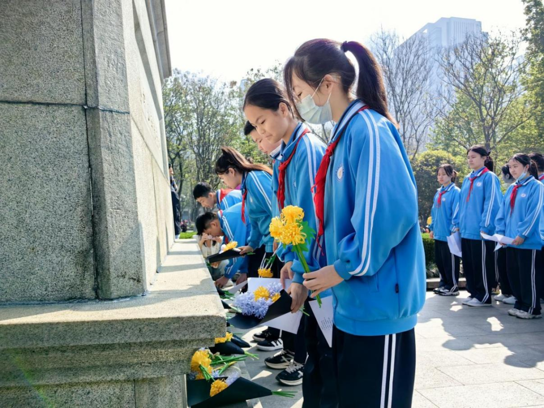 万松街道电业社区组织辖区党员代表、下沉单位航空路小学师生代表在辛亥首义烈士陵园开展祭扫活动。