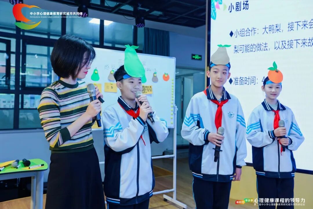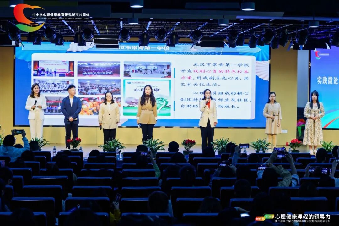 10日下午,在实践微论坛部分,江汉区心理健康教育区域教研特色分享以情景表演生动展现了江汉区域教研成果,赢得现场阵阵掌声。