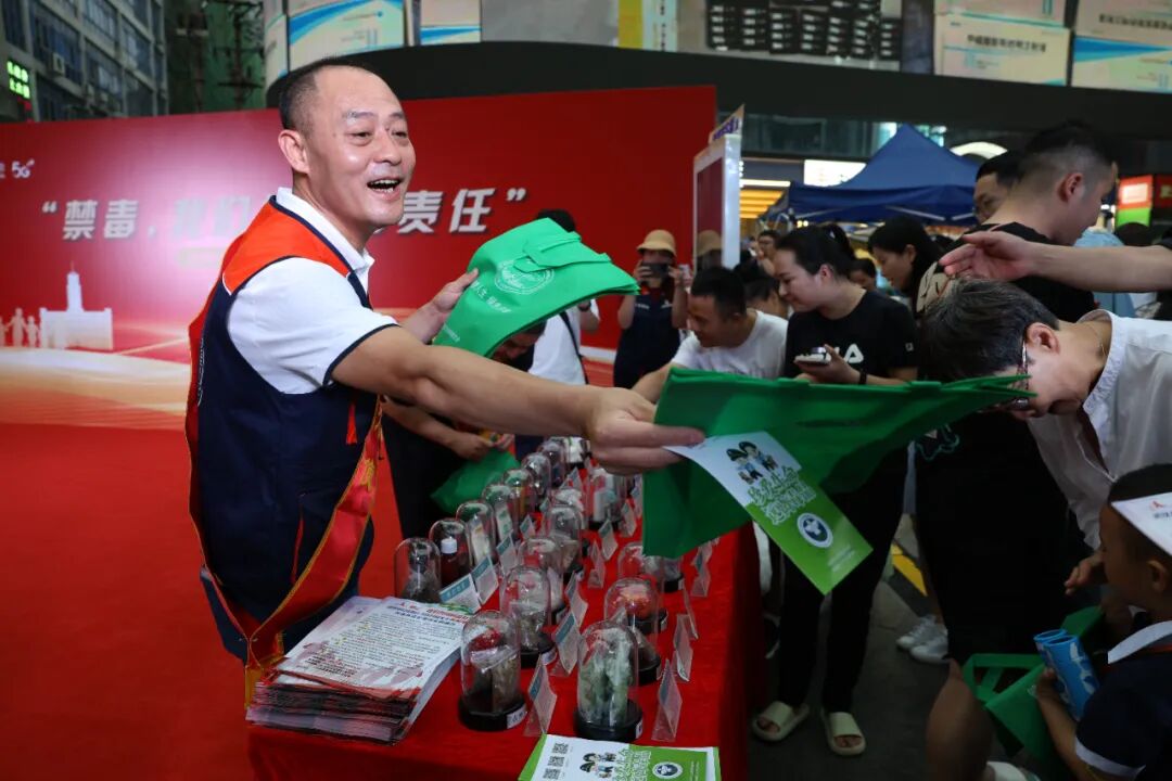 活动现场,工作人员为群众发放宣传资料,讲解禁毒知识,宣传禁毒法及戒毒条例等法律法规。不少群众也在毒品仿真盒展示台前驻足围观,了解毒品的危害。
