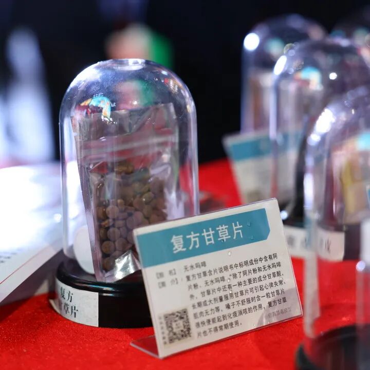 意外的是,展示台上还有大家生活中常用的药品“复方甘草片”,禁毒大使杜玉龙介绍,复方甘草片含的阿片粉或罂粟果提取物粉是麻醉药,对中枢神经有麻醉作用,连续使用、滥用或者不合理使用会产生成瘾依赖,2005年它被药监系统归为处方药,须在医生的指导下使用。如果过量和长期使用,那它将会成为祸害人的毒品。