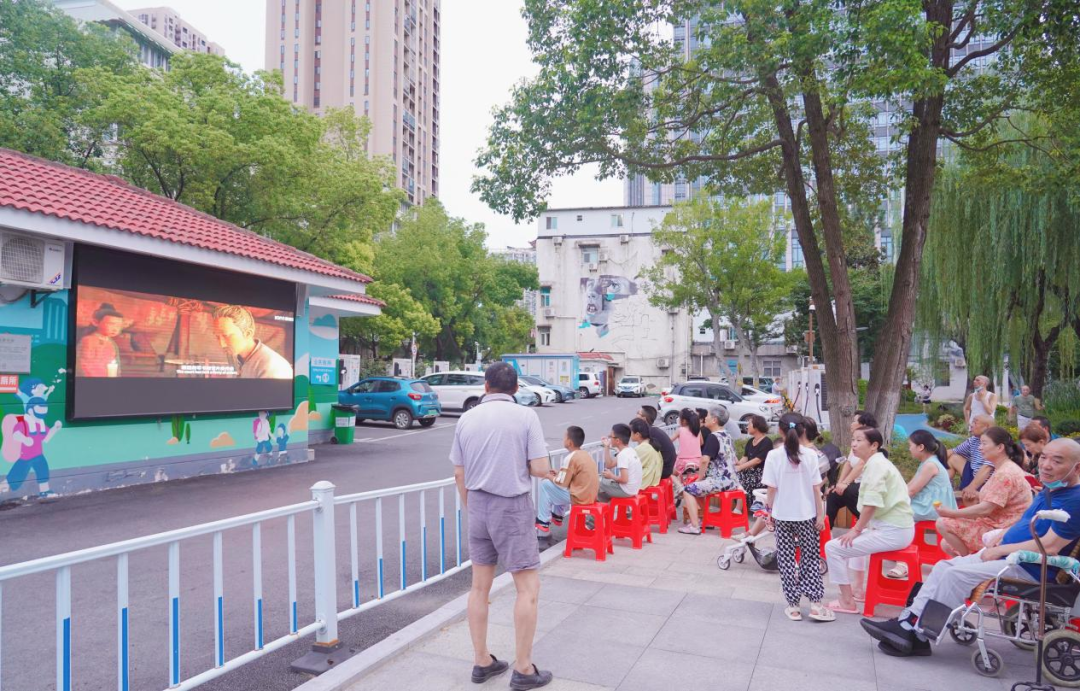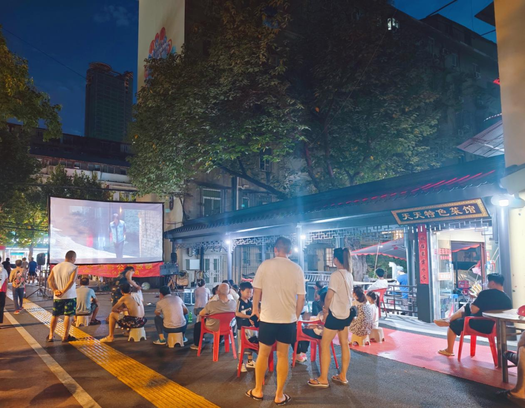 自从进入夏季,不定期的观影活动便是满春街道肖家社区街坊们晚饭后的消遣之一了。