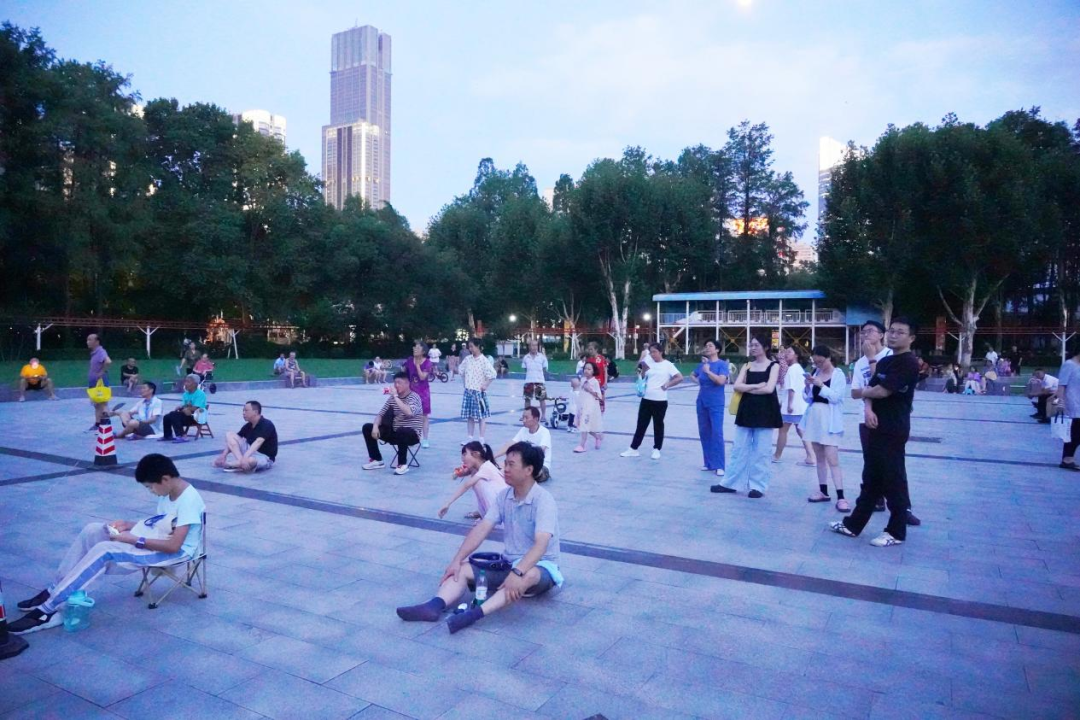 每晚19:00,中山公园的三峡屏广场总是三三两两聚集着人群,或坐或站,享受一天最清闲的时光。