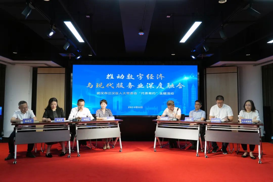 梧桐树保险经纪有限公司、武汉云计算科技有限公司、湖北华夏创业管理顾问有限公司、武汉中心书城商业管理有限公司相关负责人,对于加强数字金融相关基础设施建设、完善中小型企业数字化转型支持政策、健全数字经济与人力资源服务业深度融合机制、加大数字文化产业的创新力度等方面提出意见建议。区经济信息化和科技创新局、区司法局、武汉金融街管委会、区人力资源局予以一一回应。