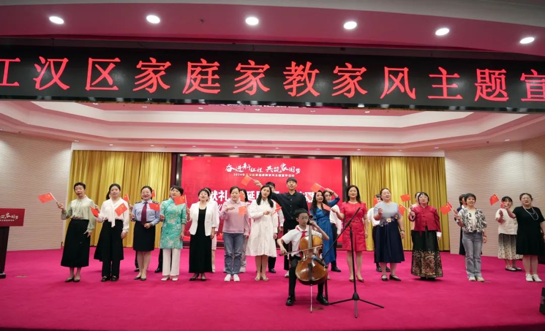 市妇联副主席袁甜,区委副书记、统战部部长胡金利,区委常委、宣传部部长赵陟,区人大常委会副主任杨俊,区政协副主席张新出席活动。区纪委监委、区委组织部、区委宣传部、区委直属机关工委、团区委、区妇联、区教育局、区红十字会相关负责人,各街道妇联主席,儿童友好创建试点社区、“好家风”典范家庭、清廉家庭代表以及爱心妈妈代表160余人参加本次活动,共同感受、传递清廉家风的力量。活动分为“幸福家风润江汉”“清廉家风扬正气”“爱育家风暖人心”等三大篇章徐徐展开,引导广大家庭重言传、重身教,营造浓厚的建设好家庭、涵养好家教、传承好家风氛围。