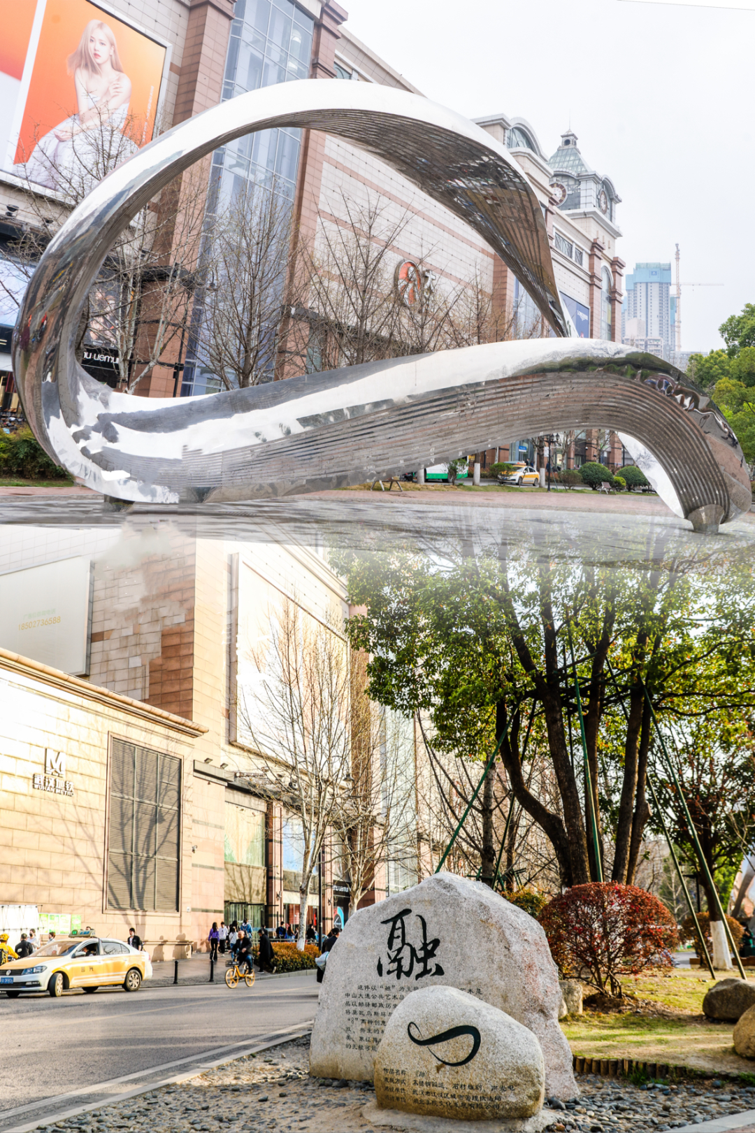 一城一画卷,一路皆风景。去过汉口水塔的朋友,一定看到过一个外形像莫比乌斯环的建筑。它名为《融》,以邮驿邮政历史与当代网络文化为线索,融合了象征“无限”与数字符号“8”的元素,是中山大道公共艺术品中一道亮丽的风景线。