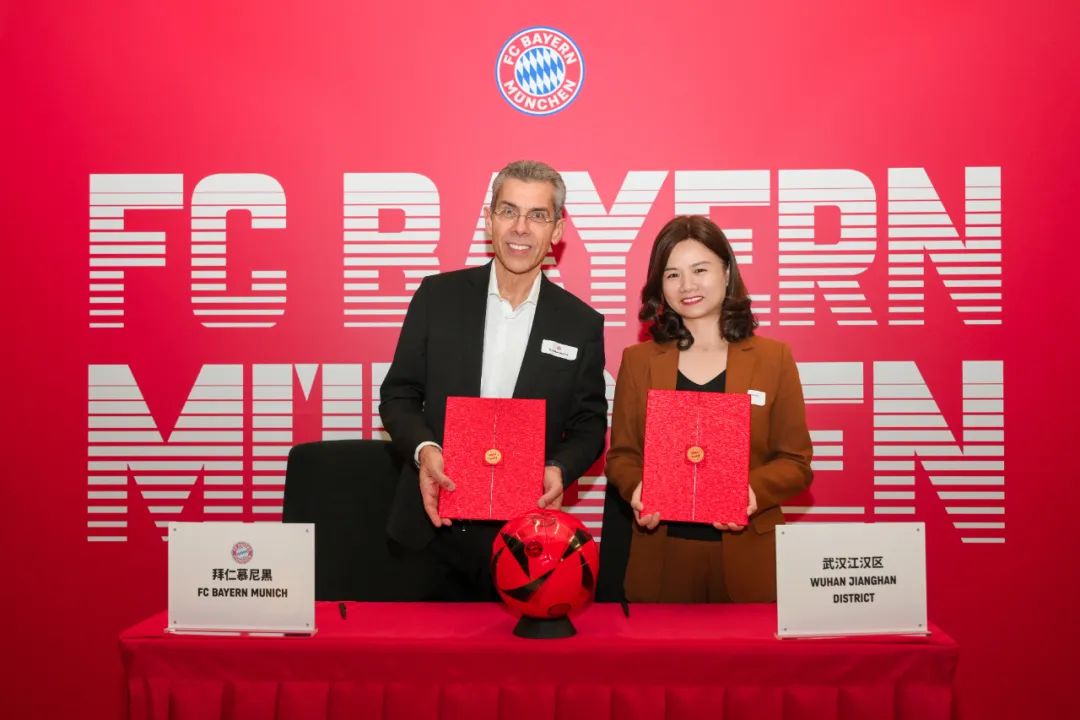 11月15日,江汉区与德国拜仁慕尼黑足球俱乐部在上海进行校园足球青少年培训项目合作签约,旨在提高全区校园足球青少年培训水平,不断擦亮江汉区校园足球品牌,助推江汉区全球知名度提升和经济社会发展。拜仁慕尼黑董事会副主席米夏埃尔·迪德里希博士,江汉区委副书记、区人民政府区长叶文静出席签约仪式。