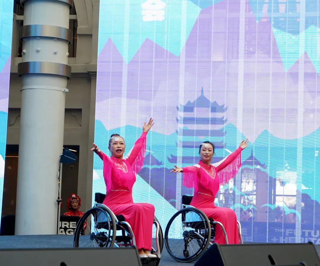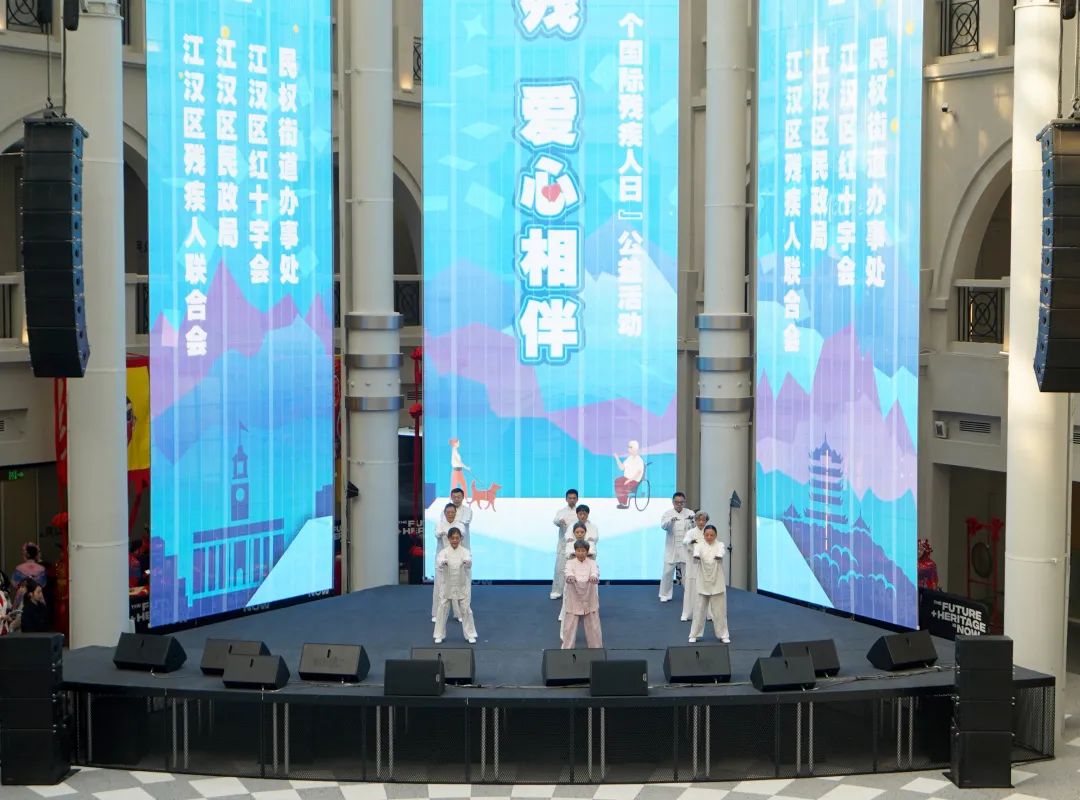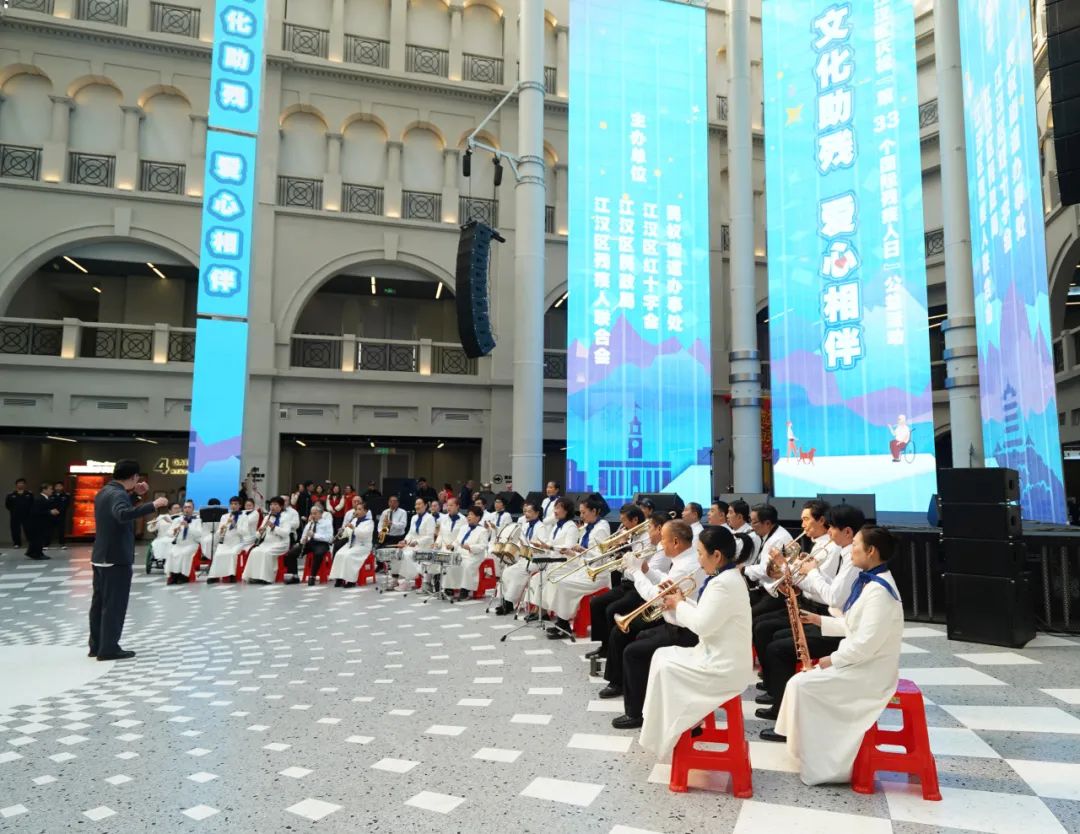 活动在江汉区残疾人管乐团带来的管乐大合奏《我和我的祖国》中拉开帷幕。这是武汉市首支残疾人交响管乐团,他们通过音乐的力量,展示残疾人朋友们对祖国的深情告白。来自江汉区残疾人轮椅舞蹈队的陈俊、魏娜表演了双人轮椅舞蹈《万疆》。该轮椅舞蹈队多次代表湖北省参加全国残疾人轮椅舞蹈大赛。