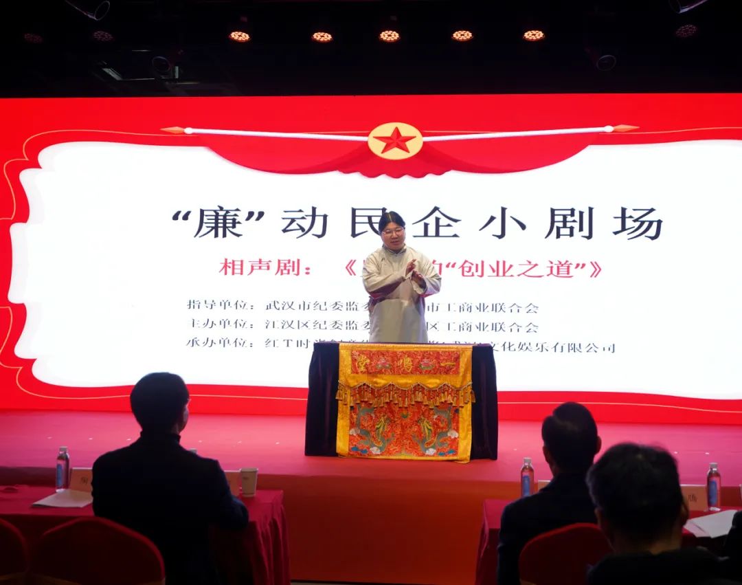与会人员集中观看了清廉相声舞台剧《舅舅的“创业之道”》,该剧通过寓教于乐的表现形式,把“清廉”主题融入文艺作品,让企业家们在幽默诙谐的表演中感受廉洁文化。