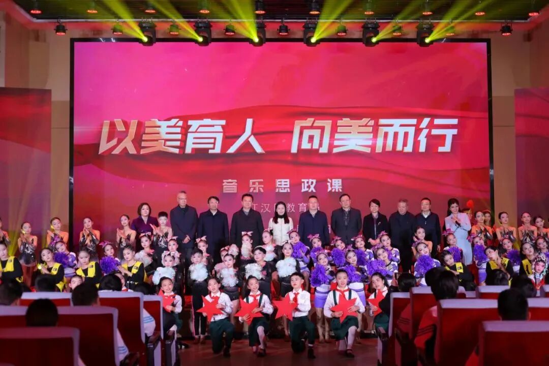 歌以咏志,舞以传情,诵以明心,剧以承脉,乐以和众。美育江汉,星耀校园。现场播放《以美育人,向美而行——江汉区美育浸润校园行动纪实》宣传片,展现了江汉区美育名师工作室、戏曲教学、创意音乐教学、学校画展、美育社团品牌活动、美育跨学科融合课程、校园文化美、美育成绩等美育浸润校园的亮点成果。