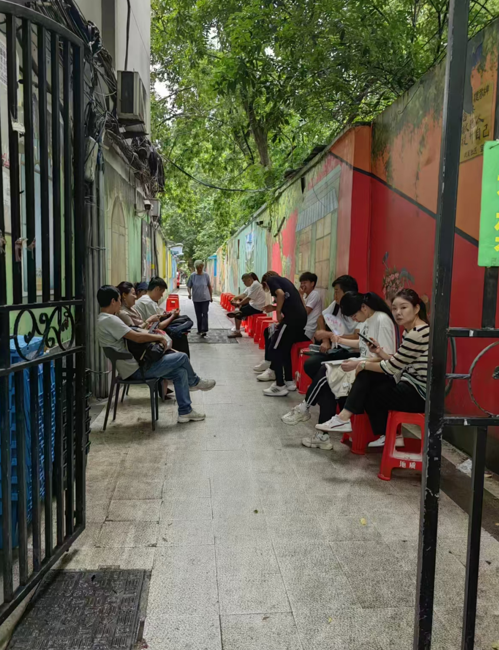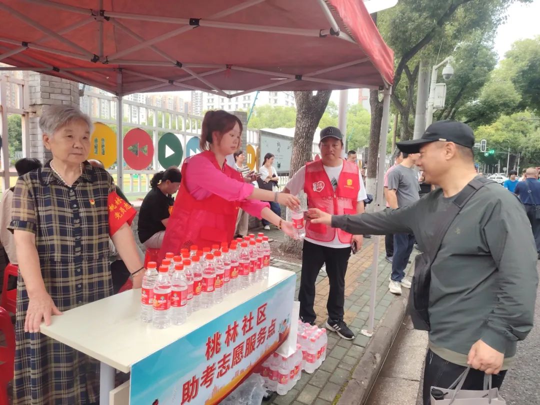 万松街道武展社区也联合苏宁易购解放大道店,在考点周边搭建起整洁的遮阳棚、设立了温馨的爱心服务站。此外,社区还在14号院设置家长休息区,配备了充足的座椅供家长休憩,还提供了免费的饮用水、清凉油等防暑降温用品,以备不时之需。