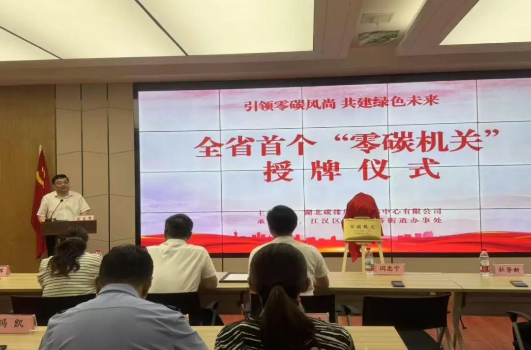 为深入践行国家“双碳”战略,加快绿色低碳转型,推动区域高质量发展,近日,“全省首个零碳机关”授牌仪式在花楼水塔街道举行。湖北省机关事务管理局,江汉区政府办、区发改局、区机关事务服务中心,湖北省碳交中心,武汉市双碳研究院等单位相关负责人,部分人大代表、政协委员等嘉宾出席仪式。