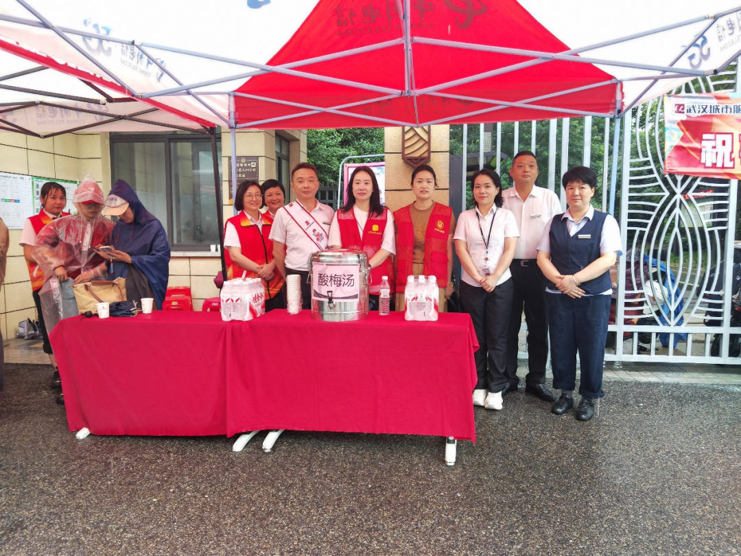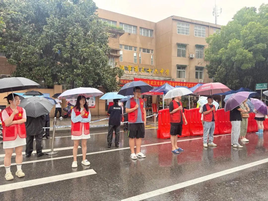 新华街道省运社区全力为武汉市第十二初级中学中考考生保驾护航。社区提前关注天气,做好雨天中考考点保障工作预案,联系街道部门,配备临时帐篷,方便考生和家长候考。