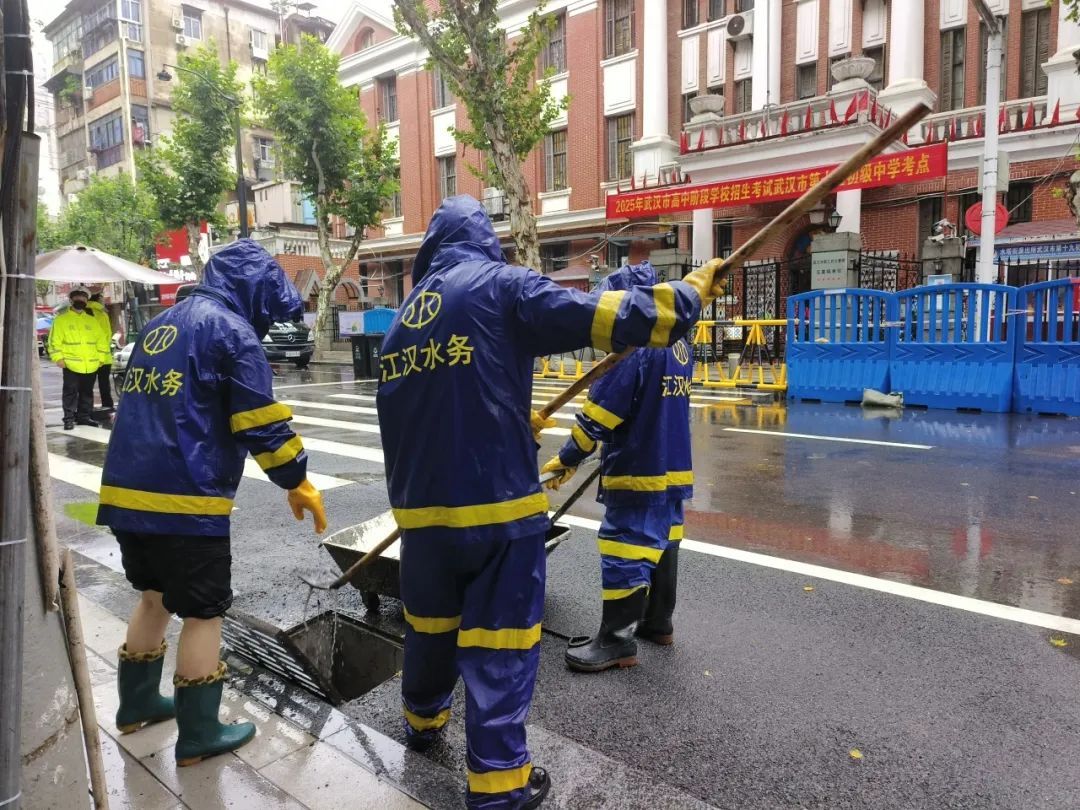在考生进入考场前1小时,江汉区水务工作人员再次对辖区各考点周边进行了全面的“地毯式”巡查。各考点值守负责人紧盯实时雨情,确保在暴雨侵袭下为考生守住“零渍水”的安全底线。同时,为最大限度减少对考场的干扰,所有应急处置作业均采用低噪音设备,维修人员在考点周边作业时默契保持“静音模式”,用“无声”的守护为考生营造安静应考环境。