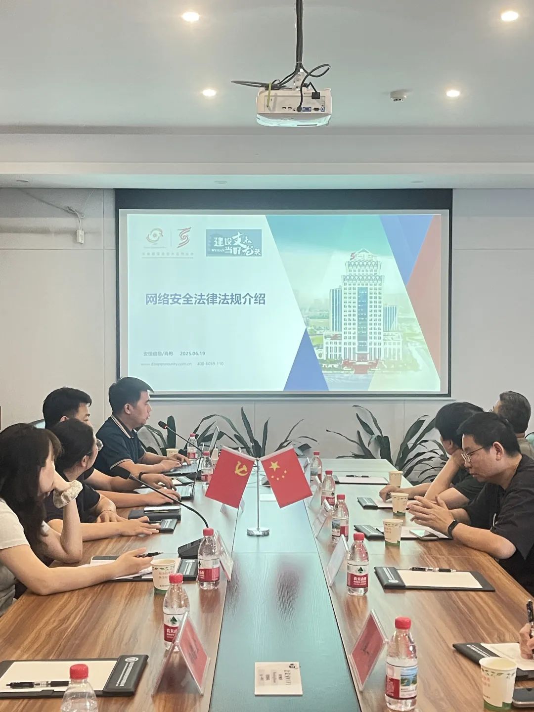 唐家墩街道则在湖北东方网盾信息安全技术有限公司举办行业交流座谈会,邀请行业专家解读《网络安全法》《数据安全法》等法规,通过“网络诈骗模拟”“数据泄露应急演练”等互动环节,为企业送上“防身指南”。活动还设置实地走访环节,与会者观摩东方网盾“3+1”业务板块,学习其“三重管理+五级划分”的网络安全体系,并交流党建与业务融合经验。活动以“学用结合”为特色,强化了企业“安全与发展并重”的理念。