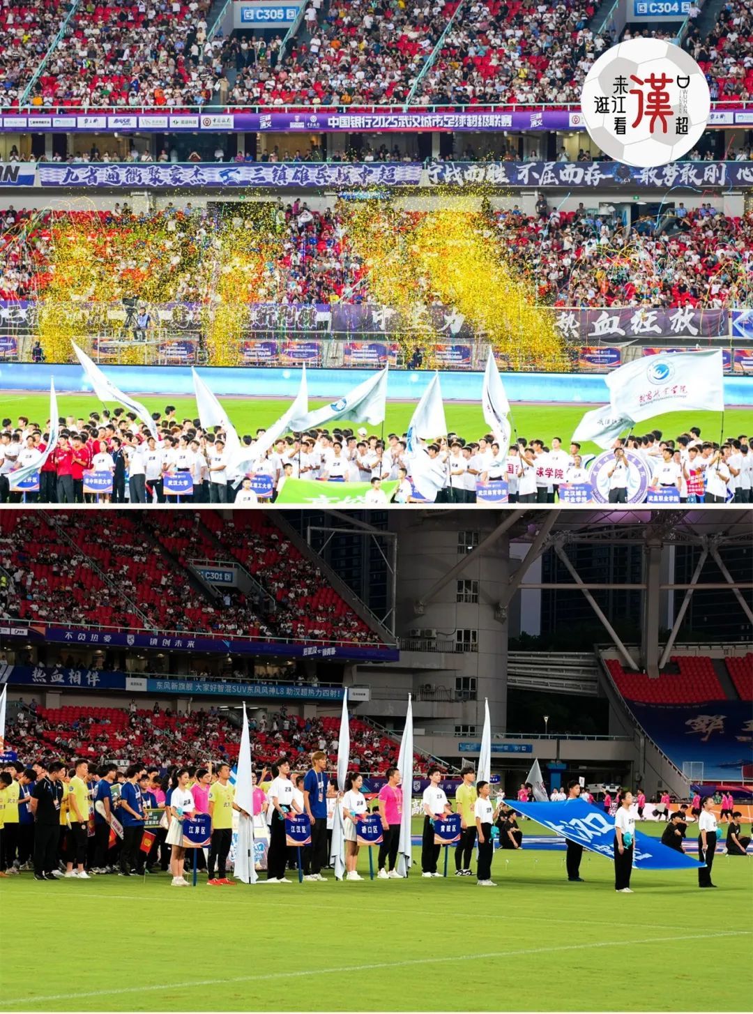 今天19:26,武汉体育中心主体育场,2025武汉城市足球超级联赛(简称“汉超”)正式开幕,江城武汉进入足球狂欢模式!