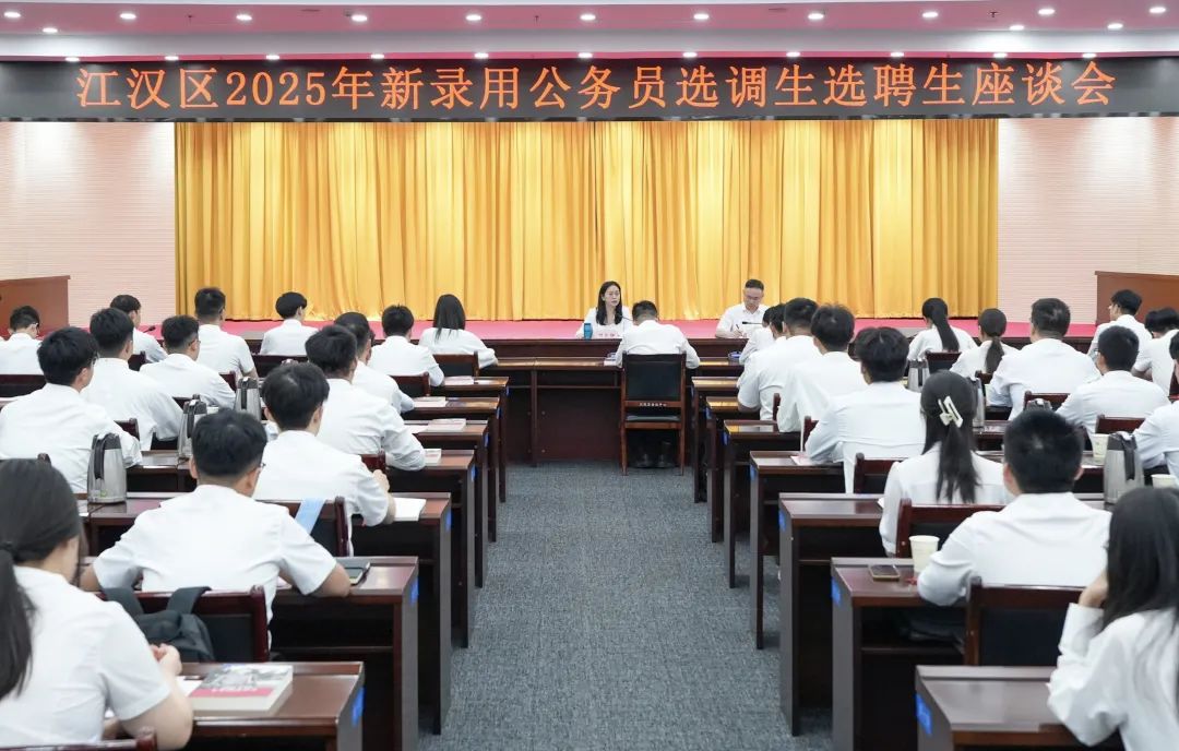 为深入贯彻“干部素质提升年”工作部署,帮助新录用公务员选调生选聘生尽快适应岗位要求、提升履职本领、强化支点意识,8月22日,江汉区召开2025年新录用公务员选调生选聘生座谈会,区委书记叶文静出席会议并讲话,区委常委、区委组织部部长姜辉主持会议。