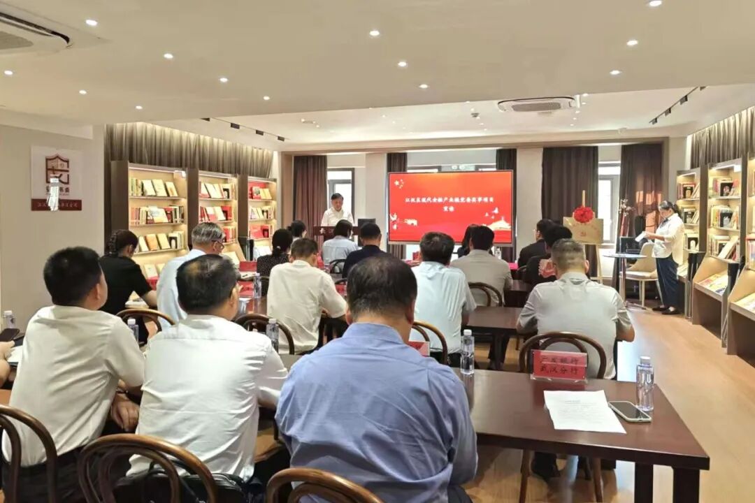 为深入贯彻落实新时代党的建设总要求,持续深化产业链党建工作,推动党建工作与产业发展融合共促,近日,江汉区委组织部、区委社会工作部、武汉金融街管委会联合举办现代金融产业链党组织联建共建活动暨“十件实事”发布会,市委金融办、区级有关单位、链上企业党组织代表等20余人参加。