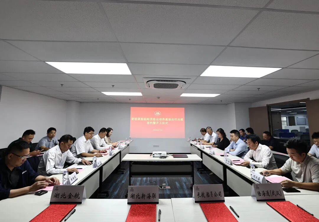 在合作共建交流环节,各方公司代表就基地管理与运作、共建方向与目标、建设内容与规划等内容进行热烈讨论。随后,在与会嘉宾的共同见证下,武汉长航船员管理有限公司、湖北新海联船员培训有限公司、陆海通(武汉)海洋科技有限公司、湖北金航国际船舶管理有限公司代表签署了合作共建意向书,标志着新能源船舶船员联合培养基地正式进入实施阶段。