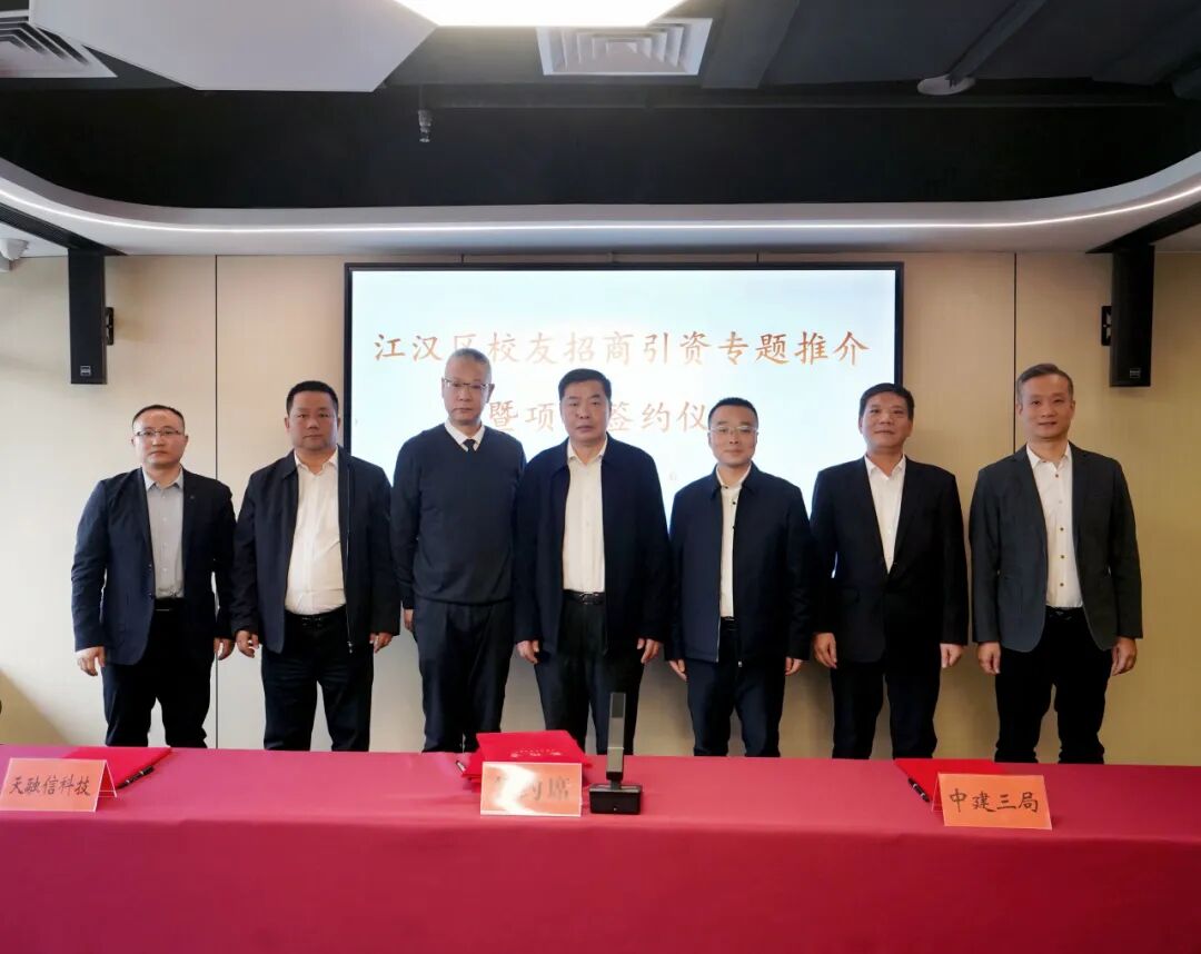 活动现场,江汉区分别与中建三局集团有限公司工程总承包公司、天融信科技集团股份有限公司、世纪金源投资集团有限公司和中衍设计集团有限公司湖北分公司等8家企业签订合作协议。